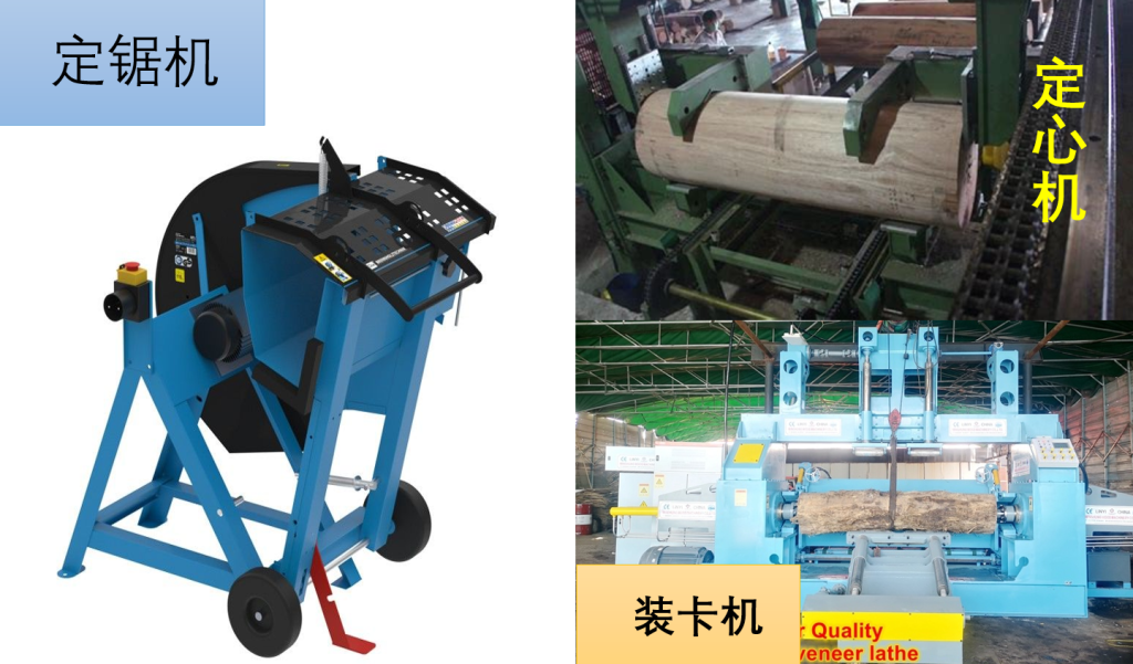 设备:定尺锯(Log cutting saw),定心机(Centering machine),装卡机(Spindle chuck loader)